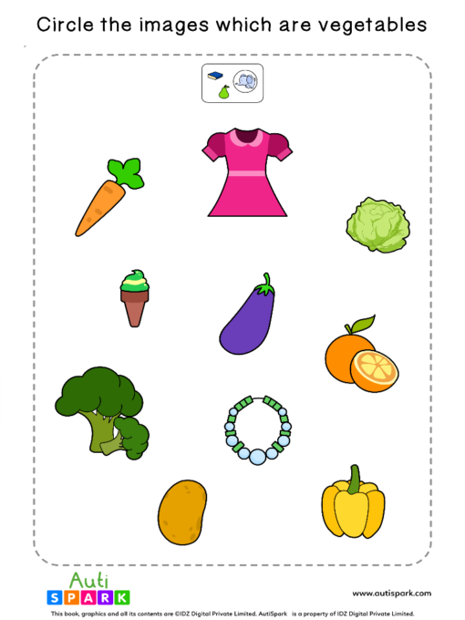 This sort by class worksheet will help your child in sorting vegetables. It will help your child gain valuable knowledge and also build their visual discrimination skills. This will help kids in gaining knowledge about different vegetables. This is worksheet 9 in this series.
